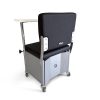 | Rodízios | em borracha termoplástica cinza de fácil desmontagem para limpeza |