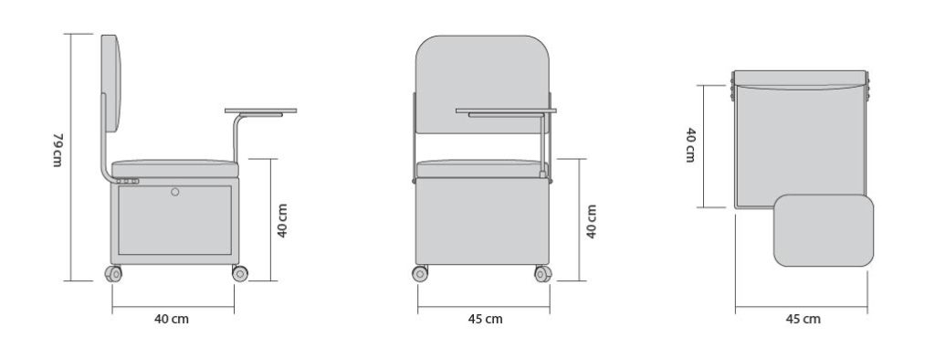 Rodízios | em borracha termoplástica cinza desmontável para fácil limpeza. |