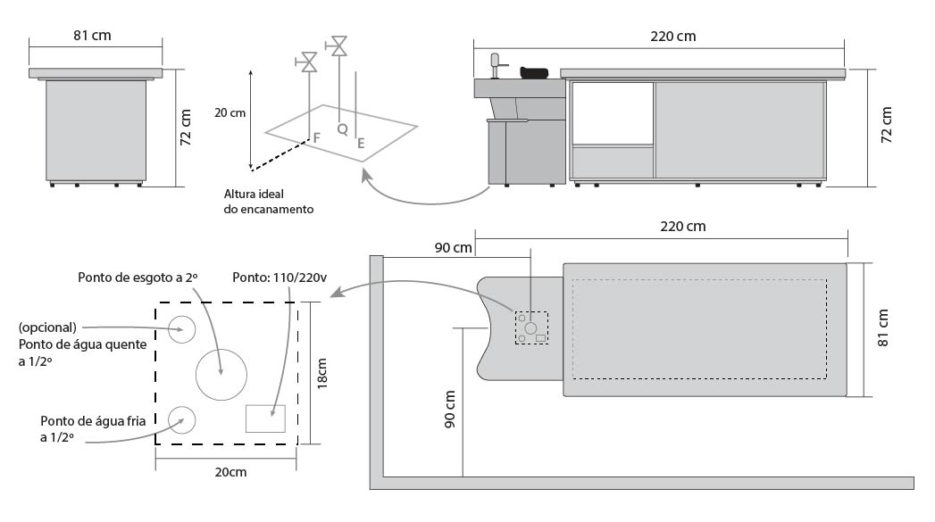 Estrutura do lavatório Aço zincado e pintura eletrostática com acabamento em aço inoxidável e acrílico